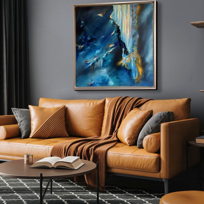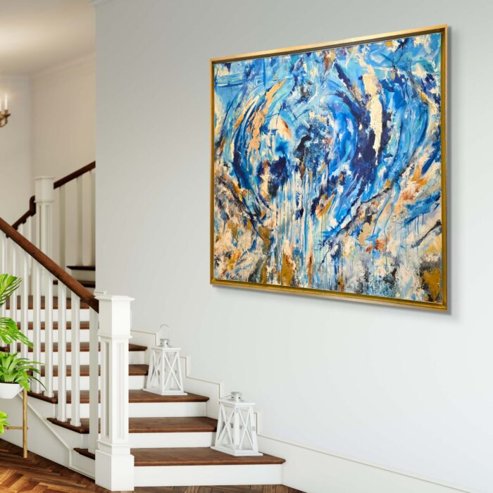 My Lived Memories collection aims to capture the feel of nature, freedom, and lived experience. Through layered colour and texture, each work invites you to connect your own story and emotions to the canvas. This piece is made up of blues, gold leaf & stunning textures.